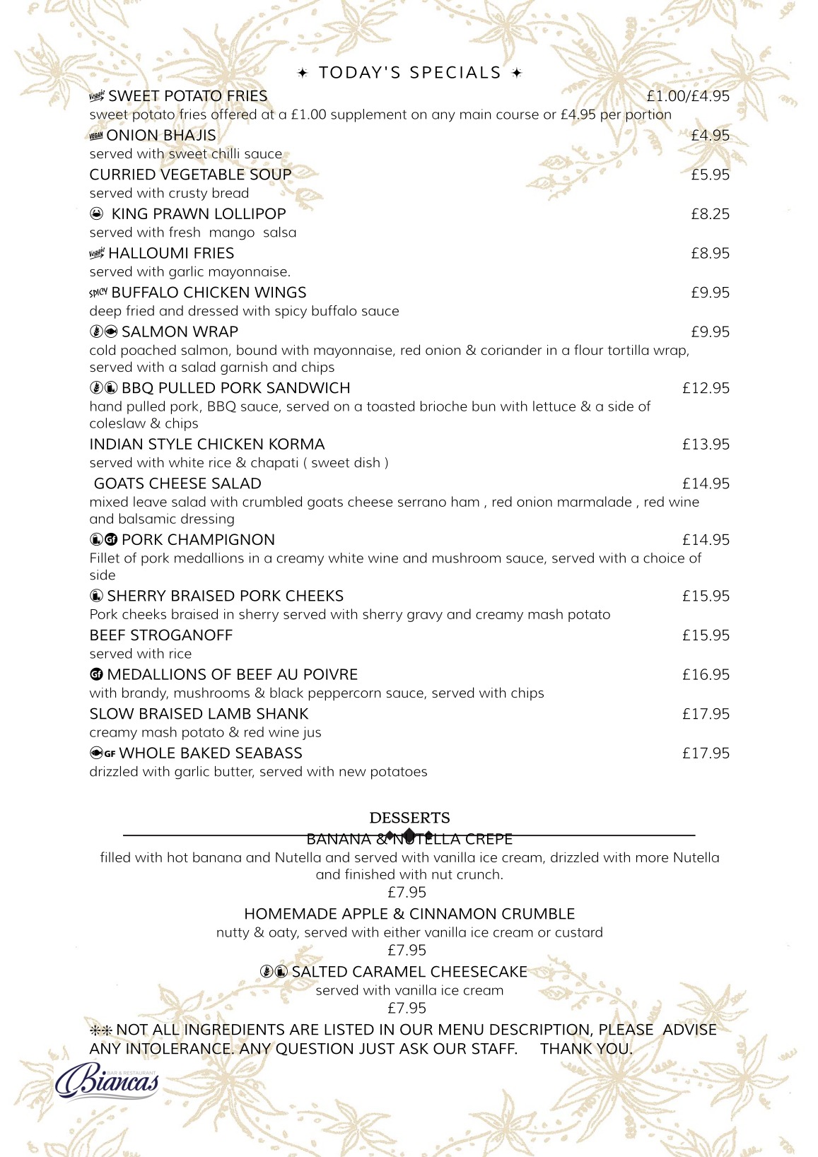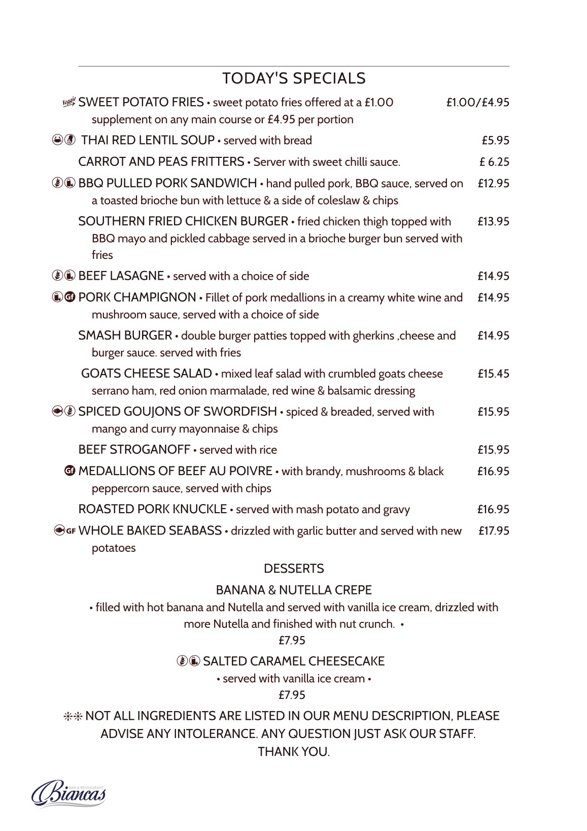 • Desserts Menu